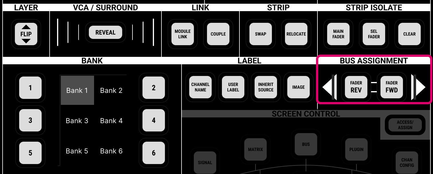 4. Deselect FADER REVERSE, or press ESC (on the SCREEN CONTROL panel), to exit the bus assign mode.