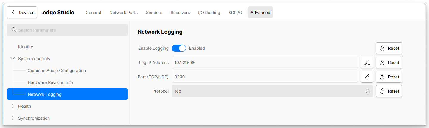 | System controls → Network Logging | Enable Logging | Enabled/Disabled | When enabled, log data is forwarded to the IP address / Port number (defined below). | |