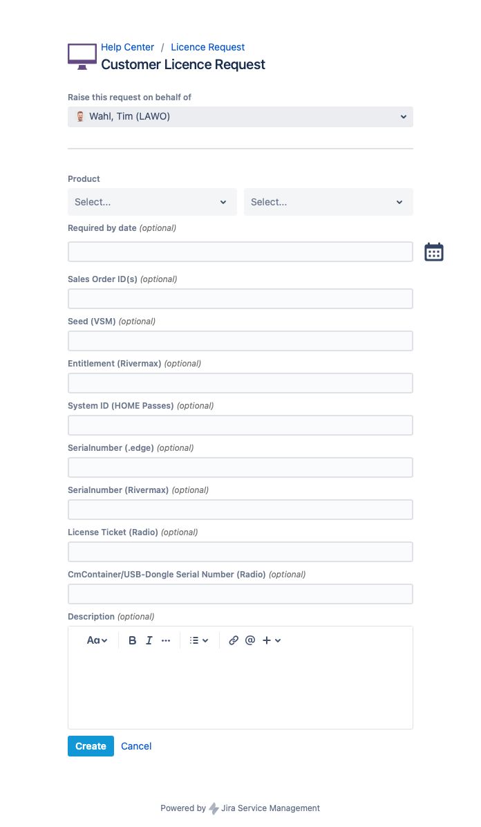 To simplify this workflow and to handle those inquires in a more transparent way License Requests can now be created in our Service Portal: