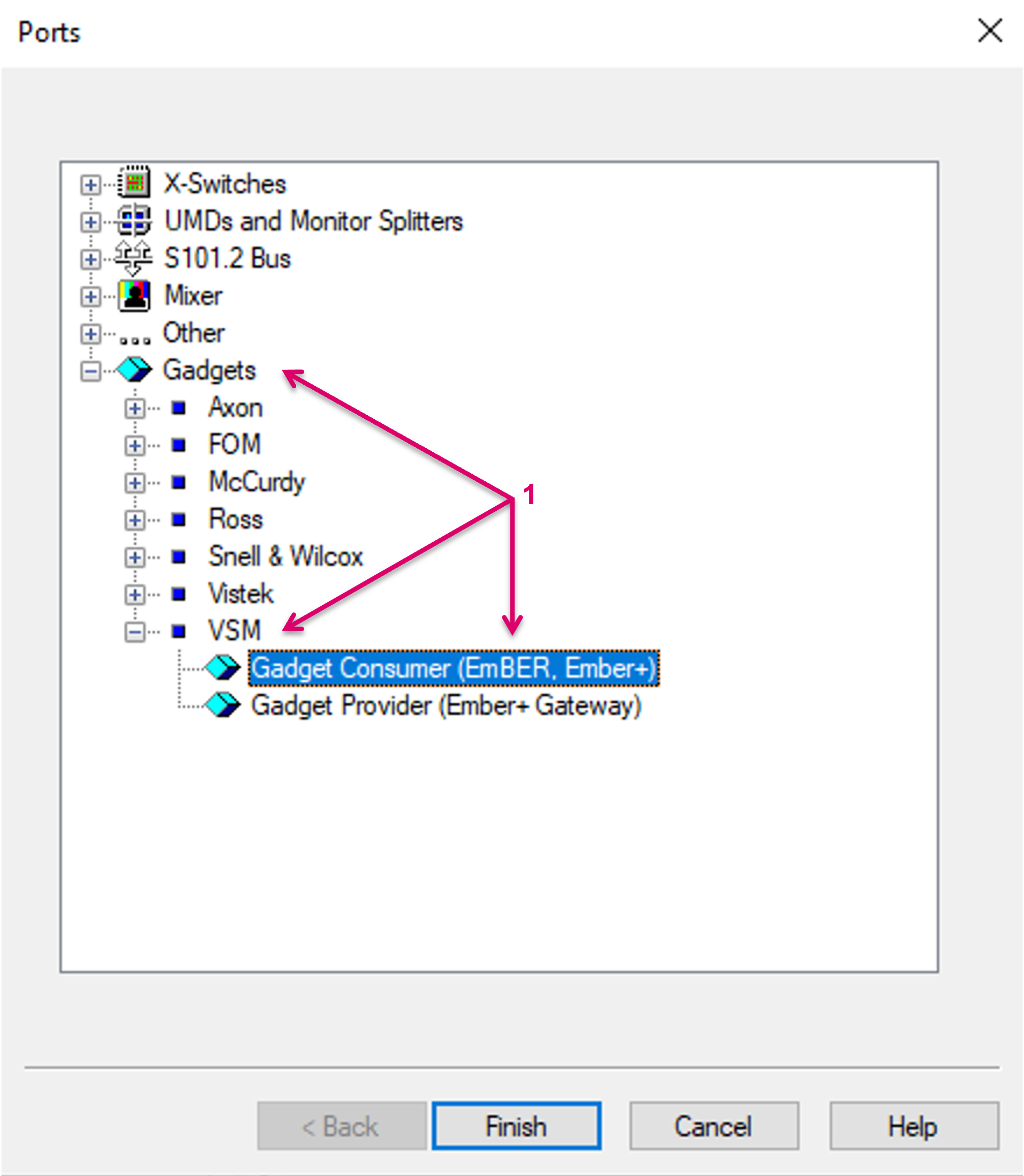 The protocol to connect to vsmGadgetServer is called Ember+ (for further details please refer to the vsmGadgetServer documentation).