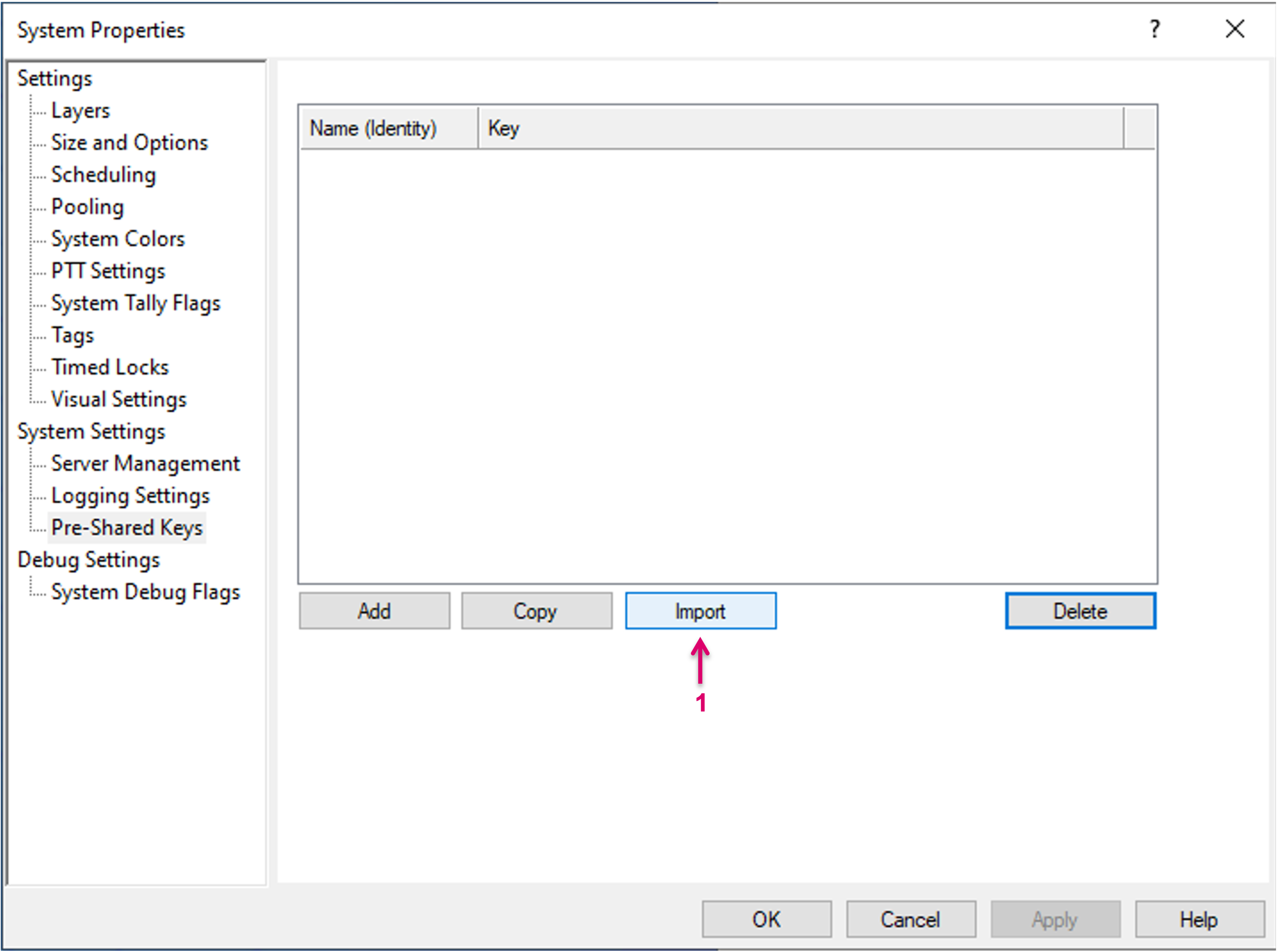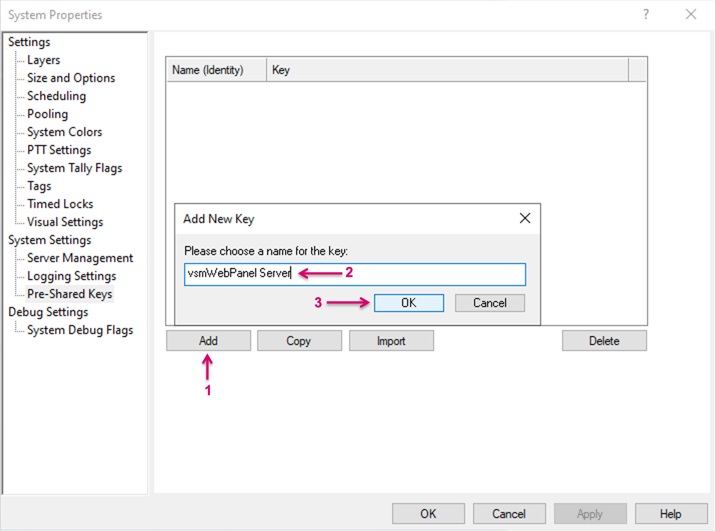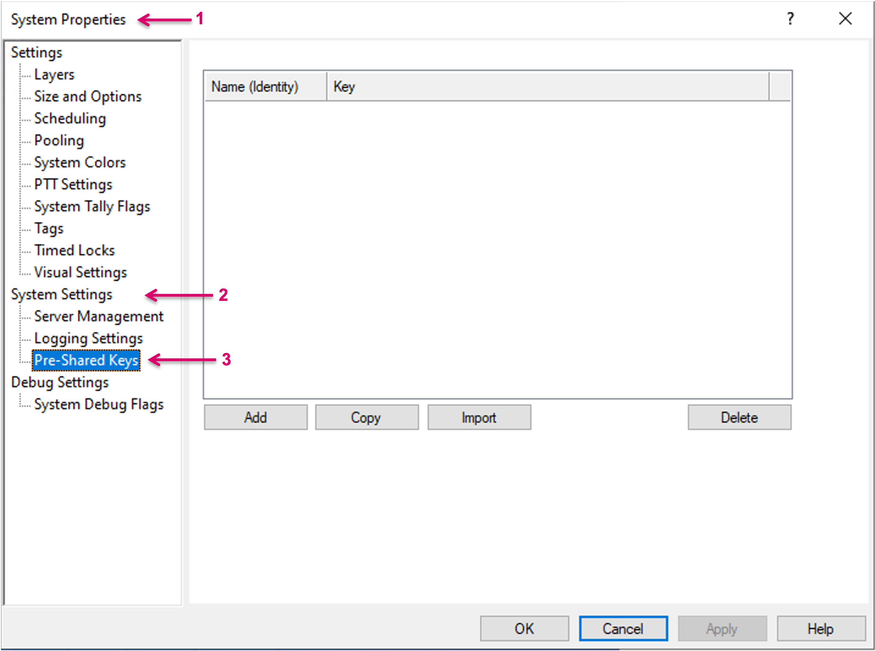 Navigate to System Properties (1)\ System Settings (2)\ Pre-Shared Keys (3).
