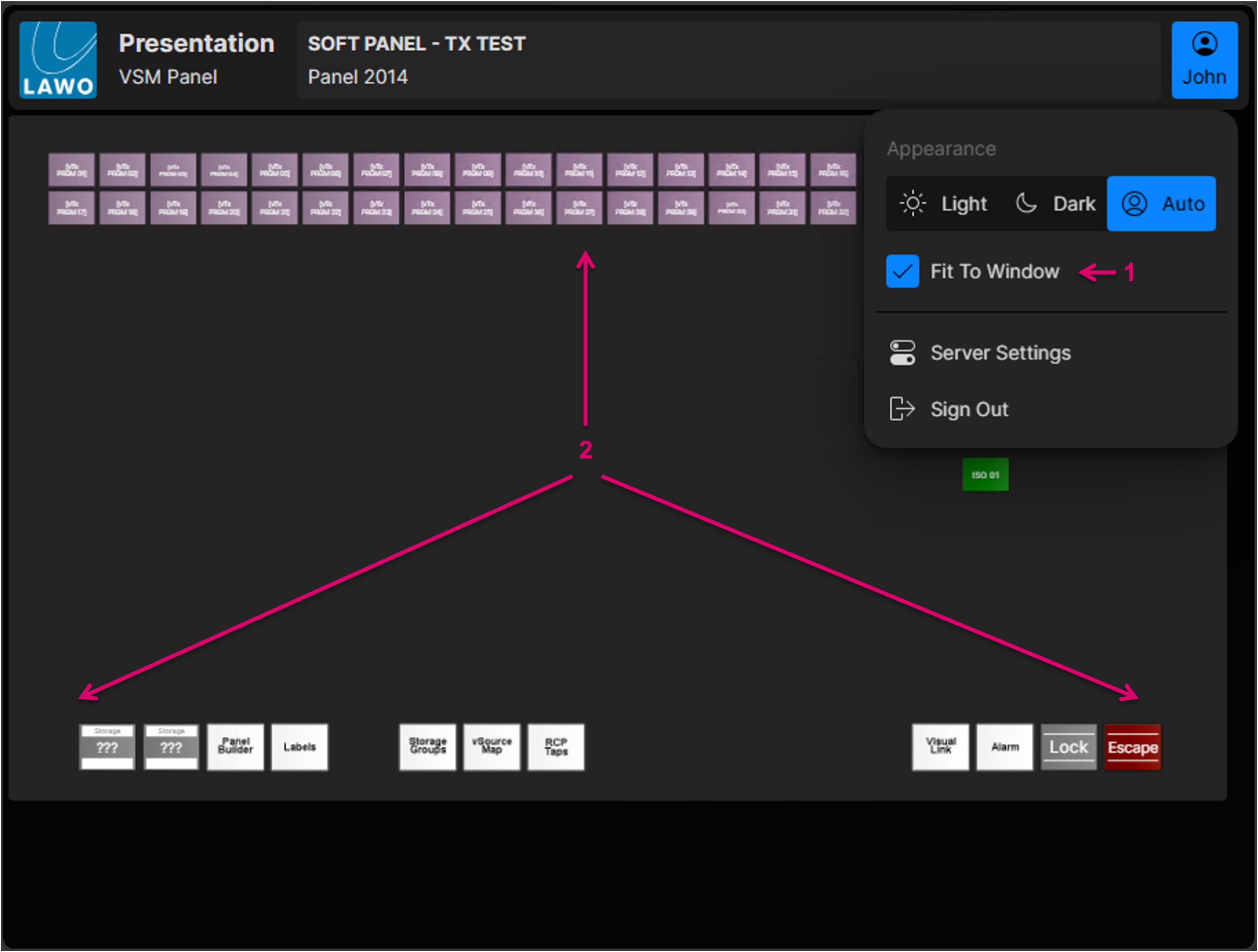 In case that the actual Panel size does not fit to the size of the Browser window, the "Fit To Window" option (1) allows to scale the panel into the available window (2).